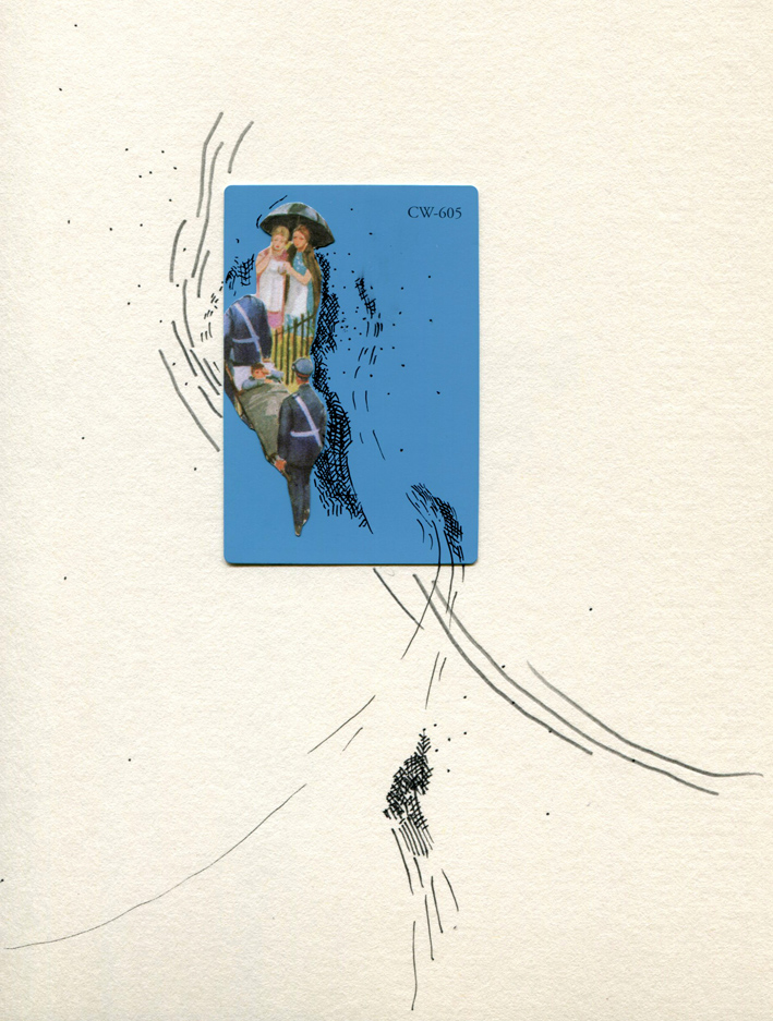 Collage, graphite and ink on photography album